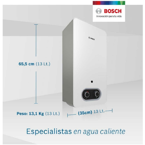 Disfruta de la máxima calidad que ofrece el calentador T2200 fabricado en Europa. Déjate cautivar por su exclusivo diseño Roundagon Bosch, moderno y minimalista. ¡Ecológico! libre de estaño/plomo. Ajusta el calentador a tus necesidades gracias a sus dos perillas. No te preocupes por las baterías, el calentador las incluye (tipo D alcalinas). Mayor seguridad para ti y tu familia debido a sus 5 Sistemas de seguridad. Podrás ahorrar gas debido a su alta eficiencia energética. Nuevo Sistema anti-sarro que evita la acumulación de partículas en la tubería. Máxima durabilidad debido a su intercambiador 100% en cobre. Calentador de paso a gas ideal para personas que desean tener agua caliente al instante y de forma ilimitada. ¡Tu inversión esta segura! Cuentas con 3 años de Garantía.